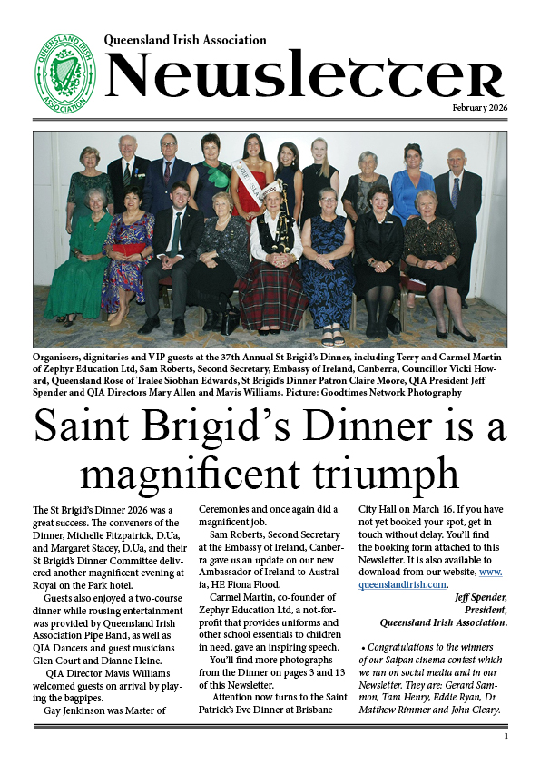 The Saint Brigid’s Dinner was a triumph and now we look forward to our Saint Patrick’s Eve Dinner. If you have not yet reserved your spot, please use the booking form HERE to ensure you don’t miss out!
